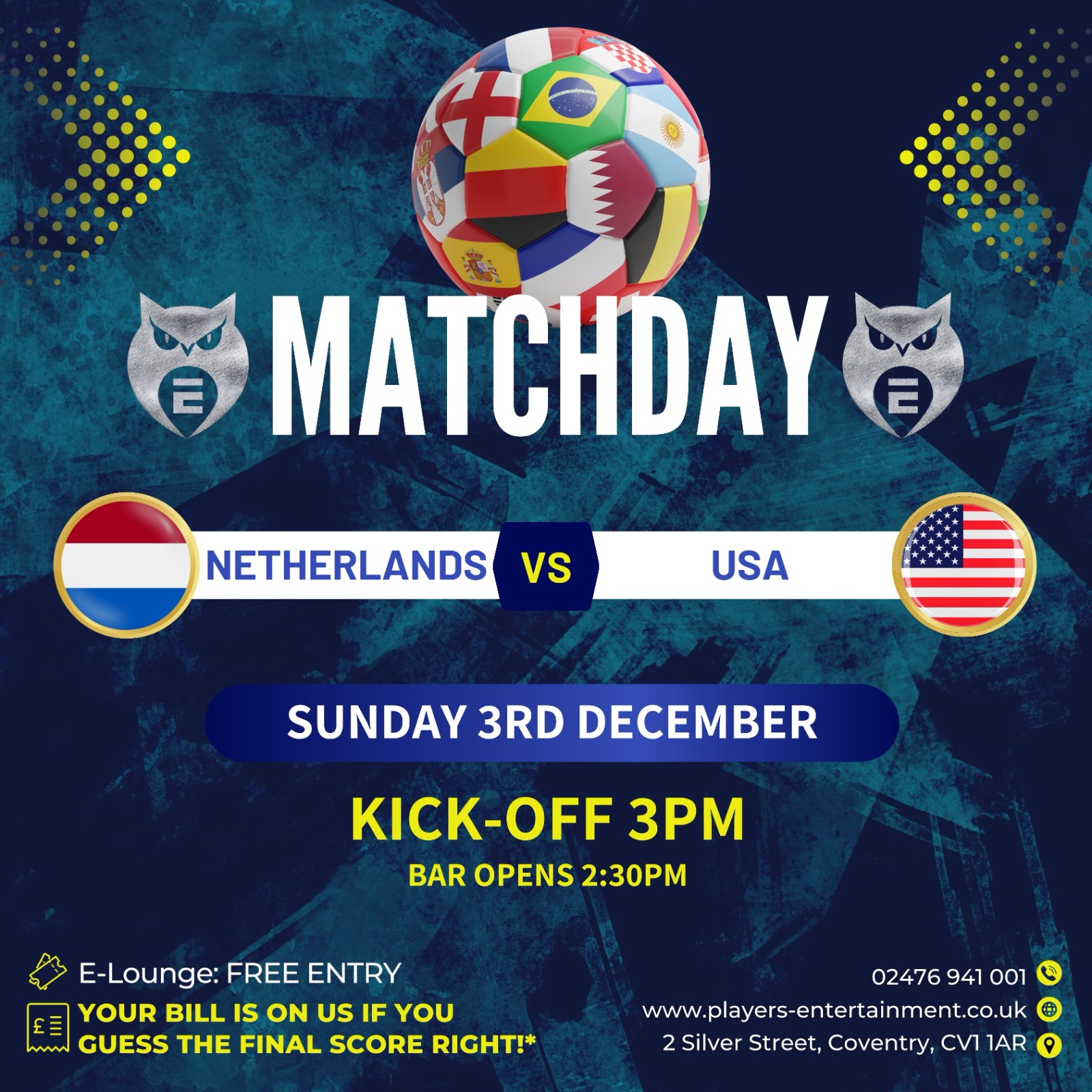 NETHERLANDS VS USA: LIVE AT PLAYERS COVENTRY