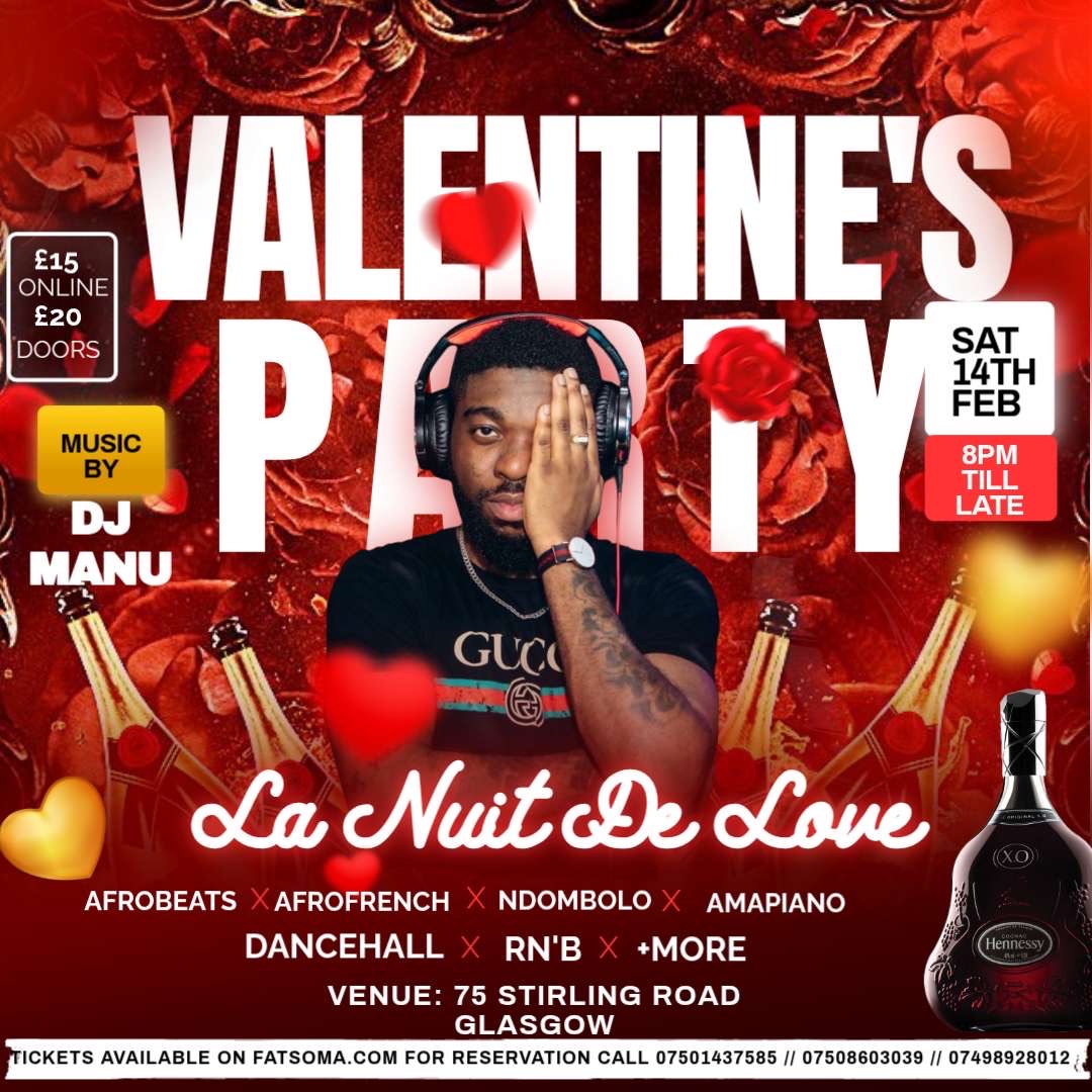 #LaNuitDeLove #ValentinesParty #GlasgowNights #Afrobeats #Amapiano #DJManu #LoveAndVibes