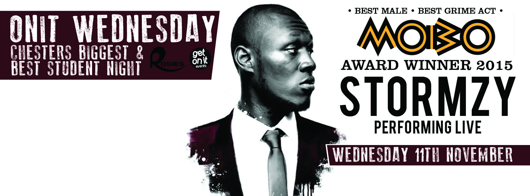 STORMZY is coming to Chester!!! After a winning BEST MALE & BEST GRIME ACT at this year’s MOBO awards to follow up on winning Best Grime Act at the 2014 MOBO Awards and being named as an artist to look out for in the BBC's influential Sound of 2015 list, he’s joining us the week after this years awards at The BIGGEST and BEST student night of the week!!