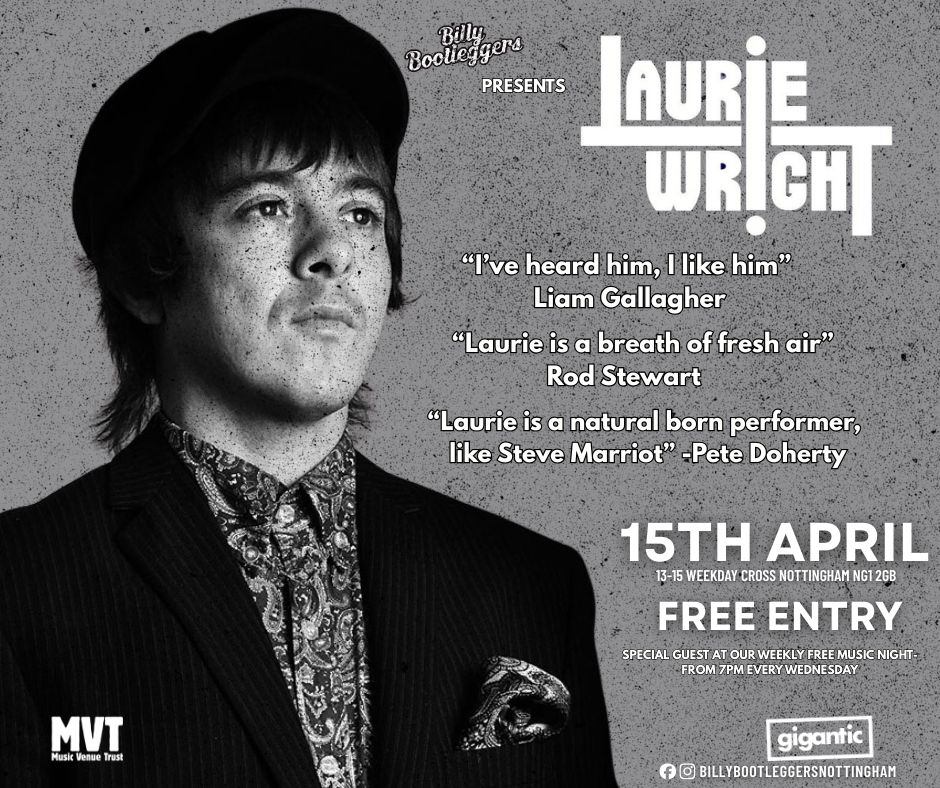 Laurie Wright is widely acclaimed for intense live shows, frequently performing in Camden and selling out venues. Described as "a force of nature" and a "natural born performer". He has just been picked out to play Steve Marriott in a brand new film about The Small Faces.
