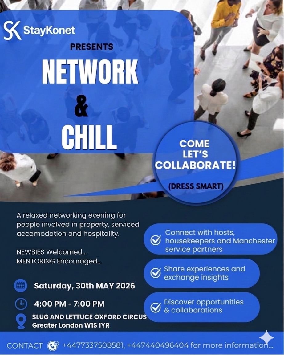 Network & Chill is a relaxed networking evening created specifically for people involved in property, serviced accommodation, short & long-stay hosting and hospitality operations.