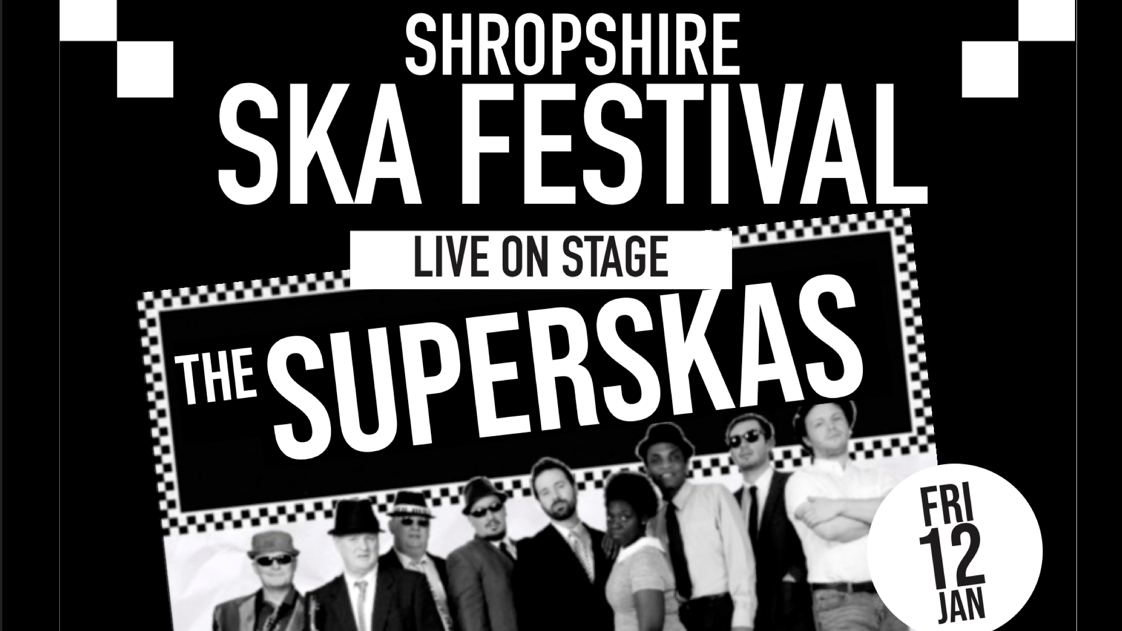 Dressed in original ska & mod gear, the band look as good as they sound. Covering hits from first wave artists such as Toots & the Maytals and Desmond Dekker, through to second wave artists such as The Specials and Madness, The Superskas really are the ultimate tribute to Ska and 2tone.
