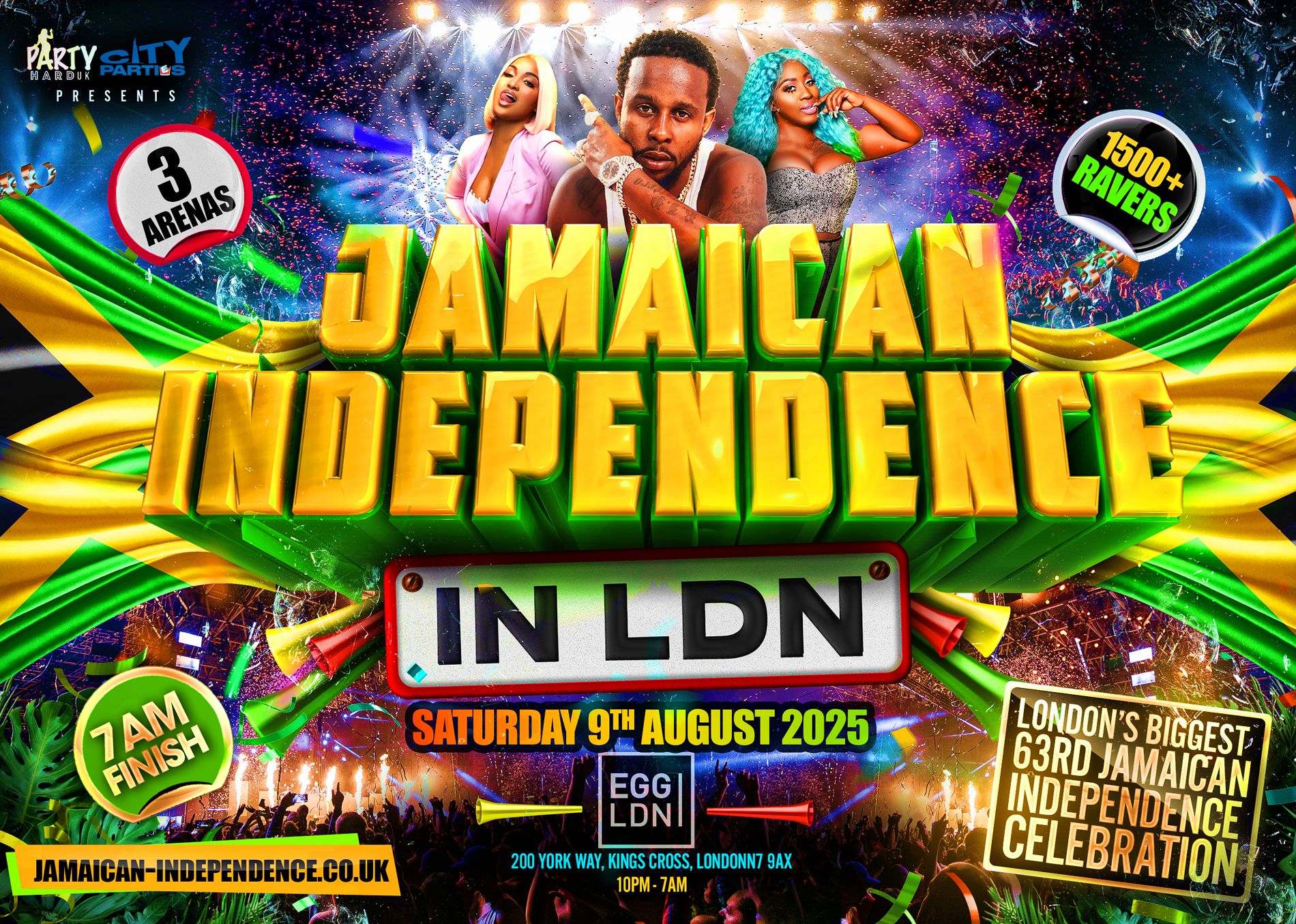 It's Jamaica's 63rd Independence! Party Hard UK & City Parties Come Together To Give The Biggest Jamaican Independence Celebration With 1500+ Ravers Spread Across 3 Arenas At The Egg London Situated In Kings Cross, Central London Until 7AM In The Morning!