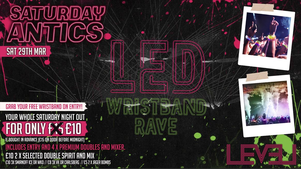 SATURDAY ANTICS - LED WRISTBAND RAVE @ Level Nightclub Bolton