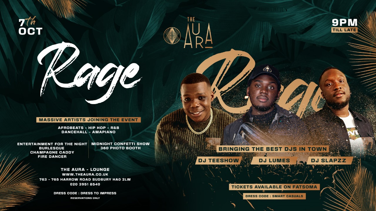 Join us for the best night at The Aura Wembley ft. DJ Teeshow (Captial Xtra), DJ Slapzz (A1 x J1 Tour DJ) and DJ Lumes, on the 7th October! Get your tickets fast as this event will sell out!