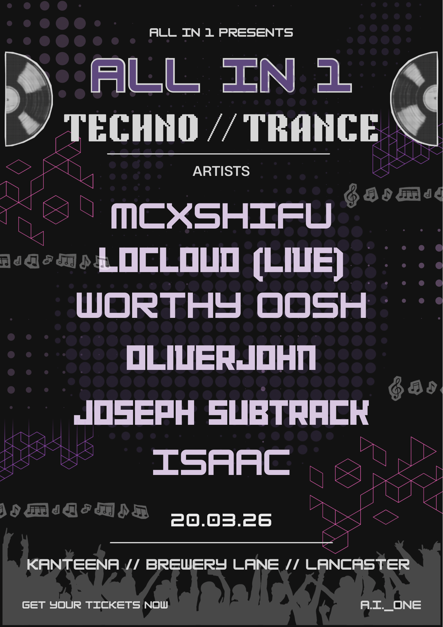 There will be an interesting mix of Trance & Techno throughout the night, so plenty to go at for the lovers of these genres.