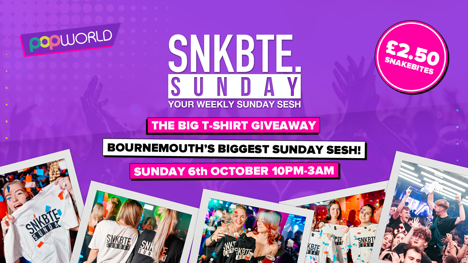 By now you will have heard about how we throw it down every Sunday at Popworld and to celebrate the return of Bournemouth students after a long summer apart, we're giving you the chance to get your hands on some Snakebite Sunday merch 🐍