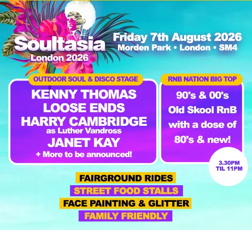 Soultasia Fesitval returns to Morden Park on Friday 7th August 2026 for a lifetime celebration of Soul & Disco with our 90's + 00's RnB Big Top!