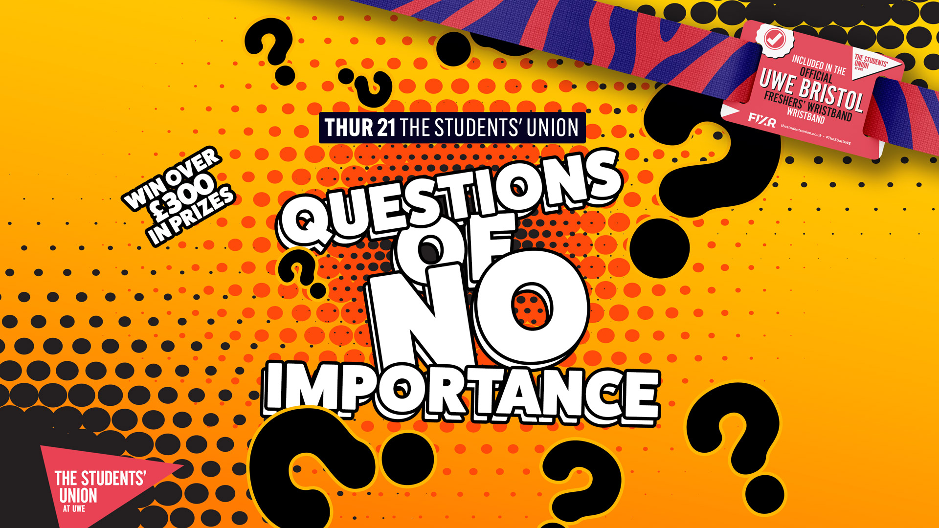 Join us at the Students Union at UWE for an evening of the most irrelevant questions and with literally no importance😏 It's only £3 to join in, but win over £300 in prizes 🤩