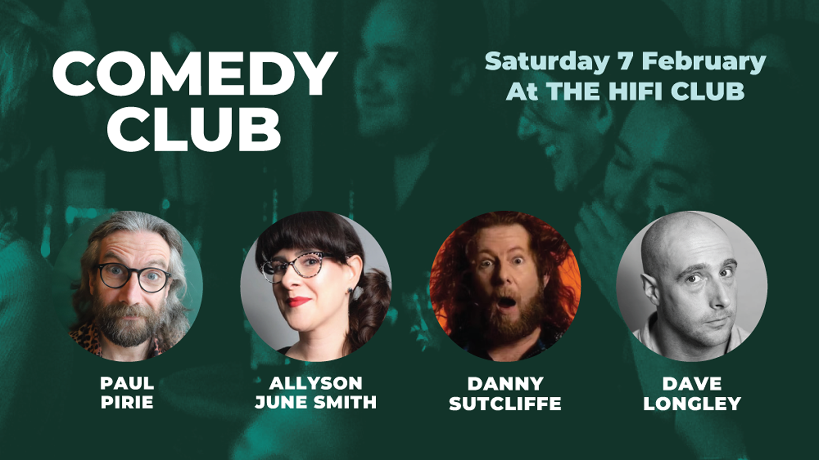 Comedy Club with Allyson June Smith, Dave Longley, Danny Sutcliffe & Paul Pirie (1st act onstage 6.45pm)