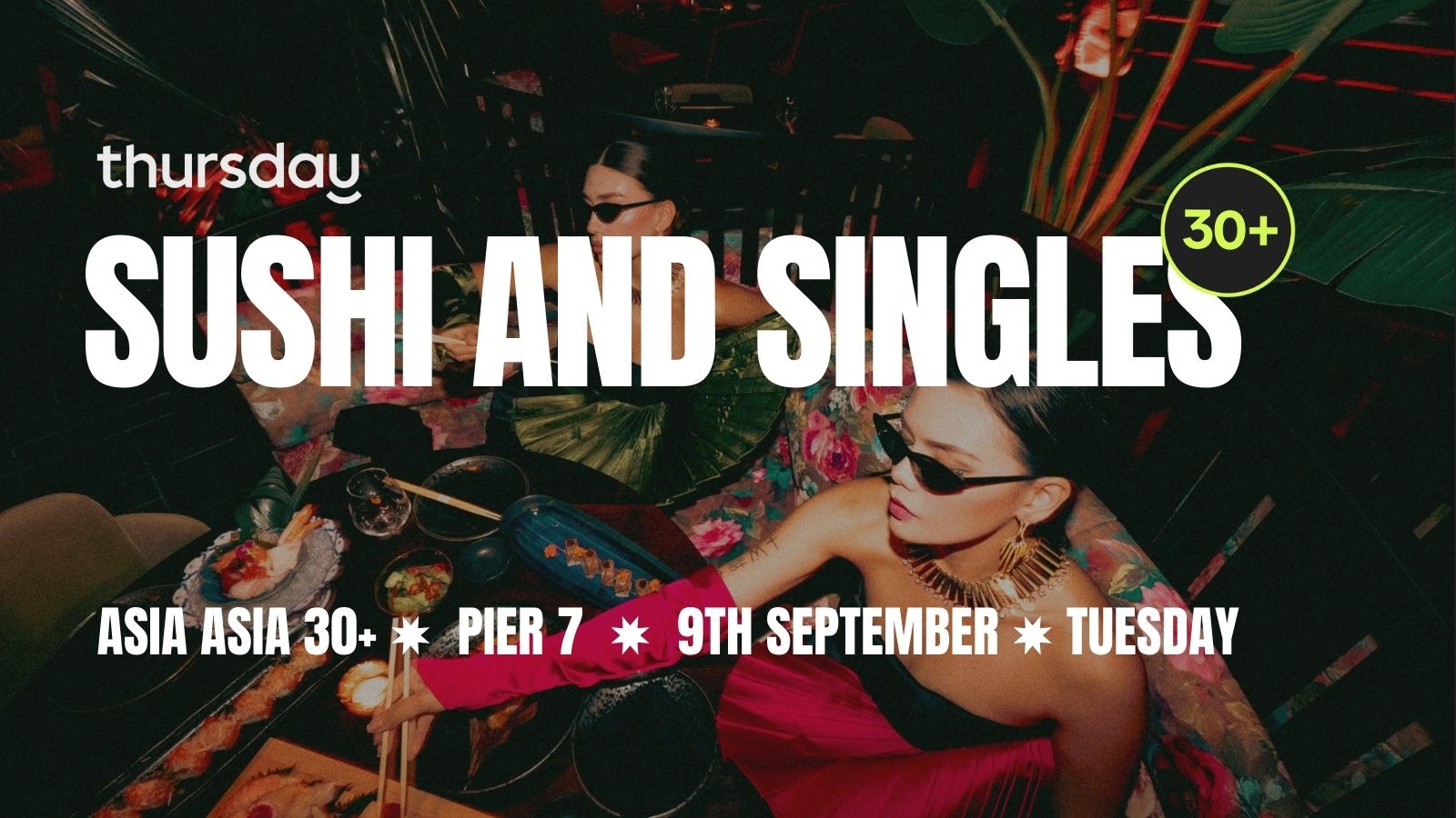 A relaxed intimate dining experience for singles aged 30 and over where real connections happen over sushi cocktails and easy conversation