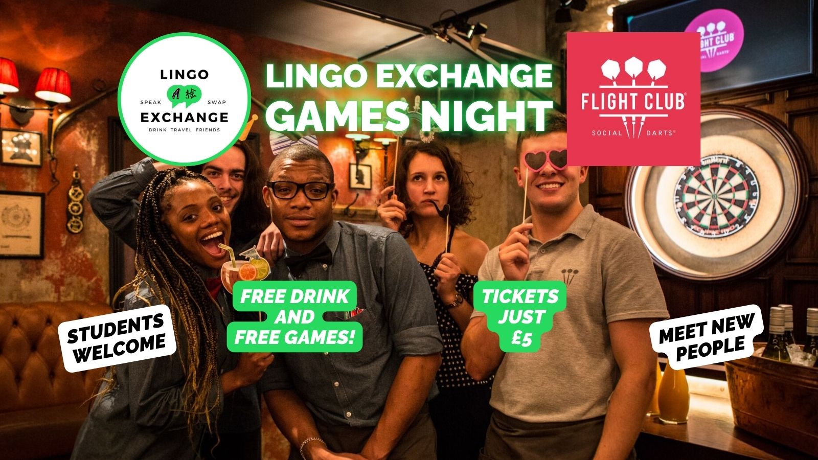✨ Tickets: £5 - includes a drink + 2 Hours of Games + 2 Hours of Lingo Exchange!