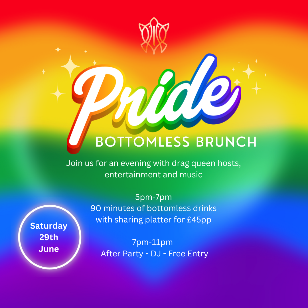 The Pride Bottomless Brunch at Tranquil Turtle in Stevenage is an exciting event celebrating inclusivity and fun. This brunch includes 90 minutes of bottomless drinks and a sharing platter, creating a festive atmosphere perfect for socialising and celebrating Pride.