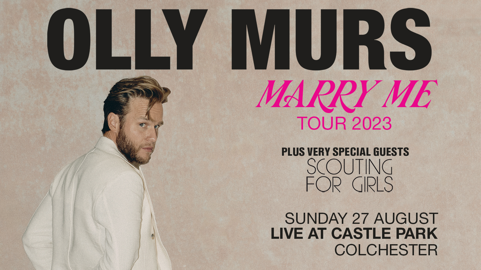 Olly is back in Colchester as part of his Marry Me Tour 2023, playing Live at Castle Park, Colchester on Sunday 27th August 2023.