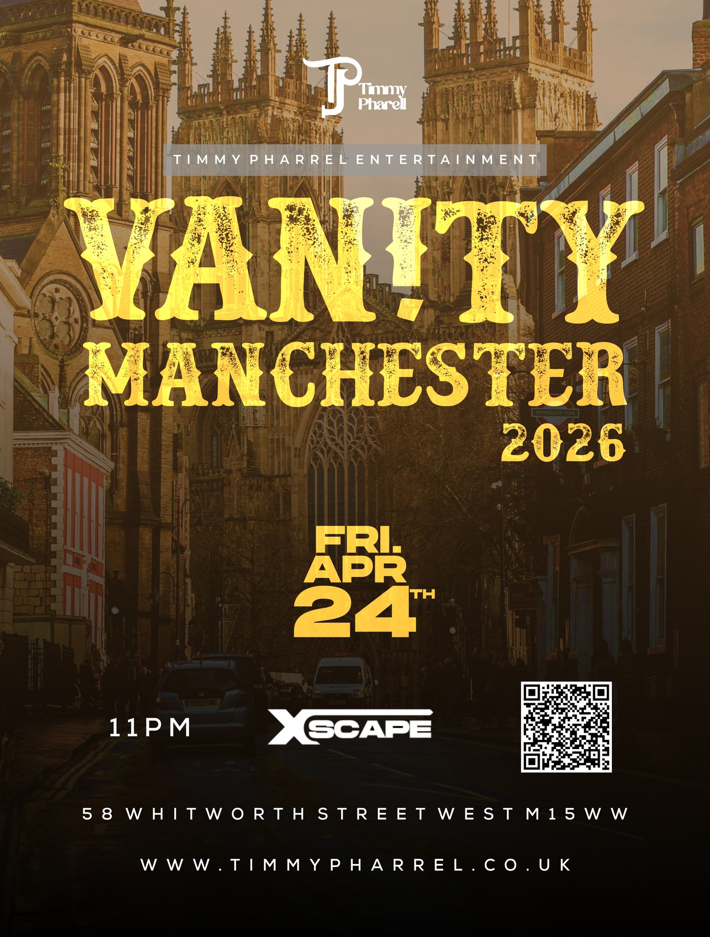 Step into a night of ultimate vibes at VANITY MANCHESTER 2026, happening at Xscape Manchester on Friday 24th April 2026, from 10PM – 4AM.