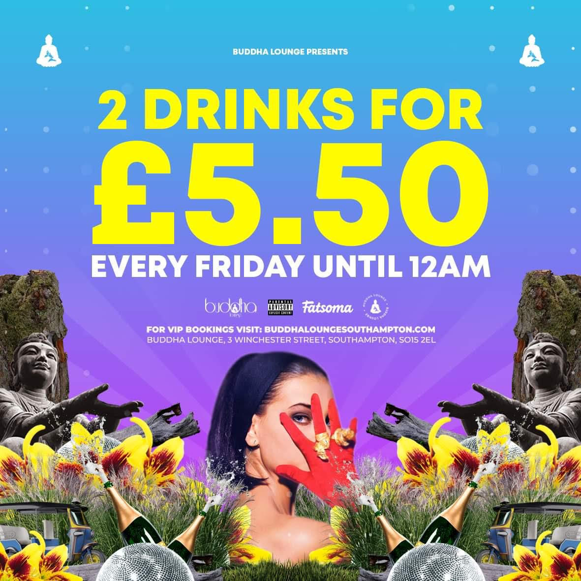 Plus 2 drinks for £5.50 before 12pm! Drinks Include: