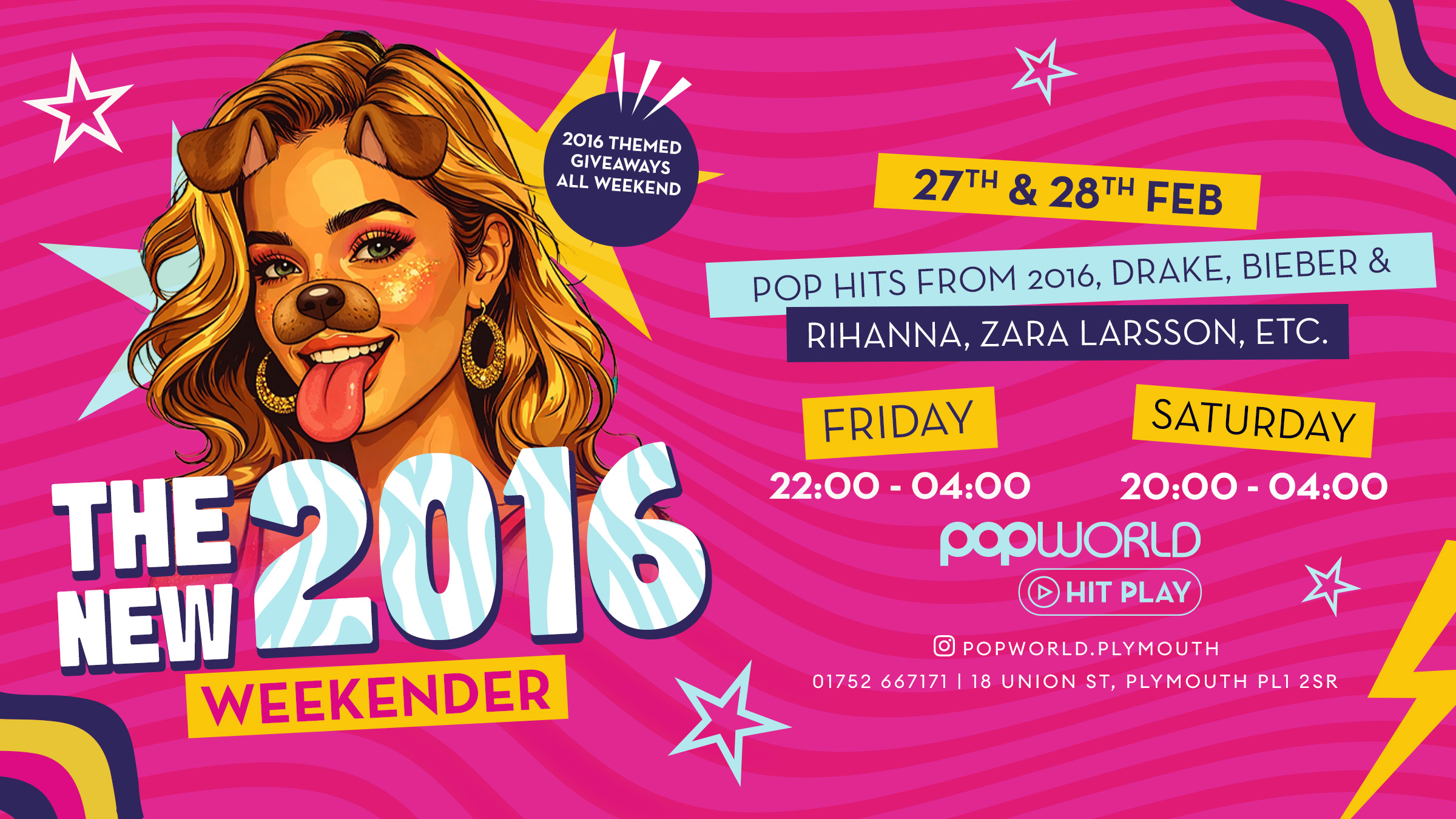 Join us on Friday 27th & Saturday 28th February as we relive the year that brought us chart‑toppers, dance‑floor anthems, and unforgettable party moments. Expect non‑stop hits from 2016 all night long — from Bieber to Beyoncé, Drake to Dua Lipa, Zara Larsson, Sia, Little Mix, and all the bangers that defined the year.