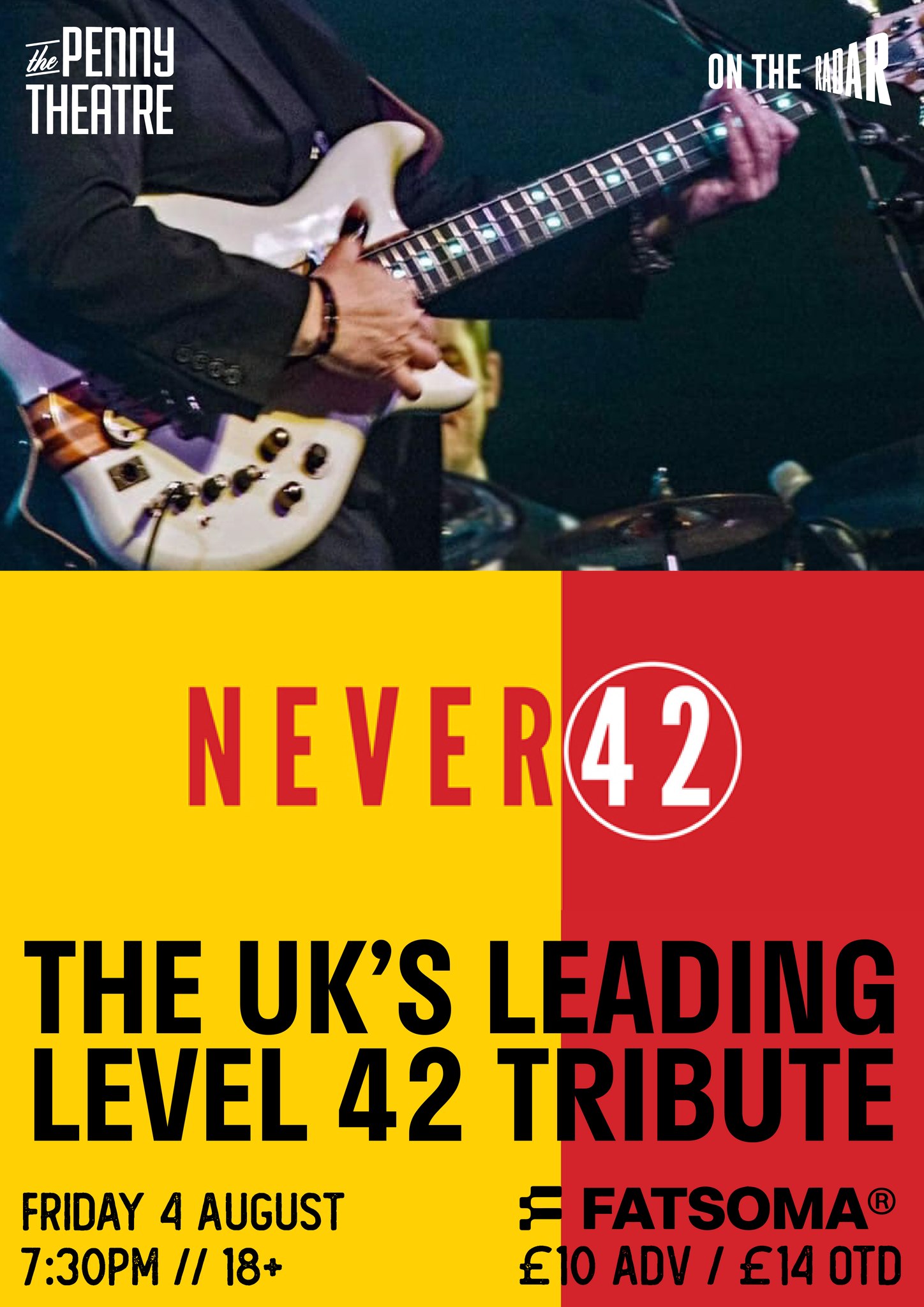 Formed in 2010, Never 42 have established themselves as the ultimate tribute to Level 42.Get ready for a high impact night of funk driven tunes bringing you all the hits of Level 42, such as ‘Lessons in Love’, ‘Something About You’ and ‘The Sun Goes Down (Livin it up)’Never 42 faithfully recreate the amazing sound and atmosphere of Level 42