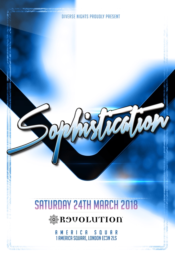 Sophistication: a gathering of the stylish and suave socialites of London city. You are invited to come along as we create a sexy ambience within the seductive settings of Revolution America Square.