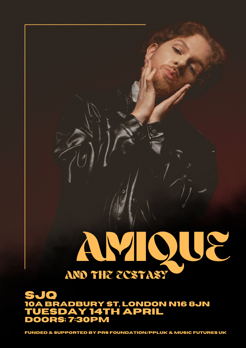 A singer, songwriter, producer and multi-instrumentalist, Amique’s work sits between soul, jazz and R&B, with songs led by feel, groove and formidable storytelling. His music carries the influence of Stevie Wonder, Prince, Hiatus Kaiyote and Erykah Badu, but the live show is very much his own — intimate, dynamic and deeply connected.