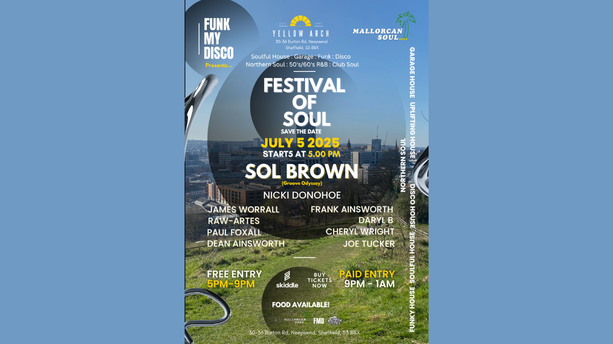 Venue: Yellow Arch Studios, SheffieldGet ready for an unforgettable day and night of soulful celebration at the iconic Yellow Arch Studios!