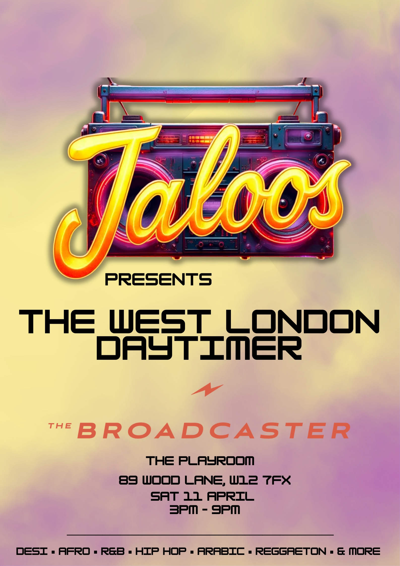 For the first time, Jaloos heads to West London for an unforgettable Daytimer at The Broadcaster in White City.