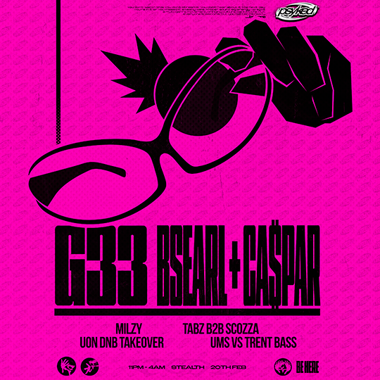 Experience the sounds of UK Garage & Grime with 1/4 of Girls Don’t Sync, G33 alongside Pull-Up Recordings’ boundary-pushing frontman BSEARL, delivering a no limits 140-175bpm set alongside viral sensation CA$PAR on the mic duties bringing pure hype to the dancefloor. Backed by a stacked lineup of Nottingham’s finest local and student selectors. And yes… our fully immersive visuals and light show is back by popular demand.