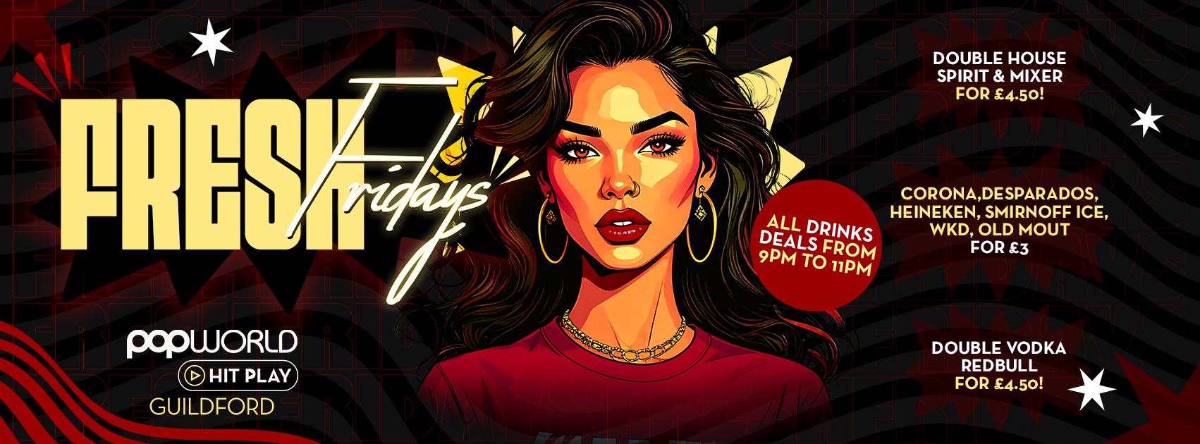 Say hello to your new Friday night obsession. Fresh Fridays is Popworld's rebranded night bringing a modern energy to the dancefloor, with the freshest tracks, biggest vibes and a party that hits different.