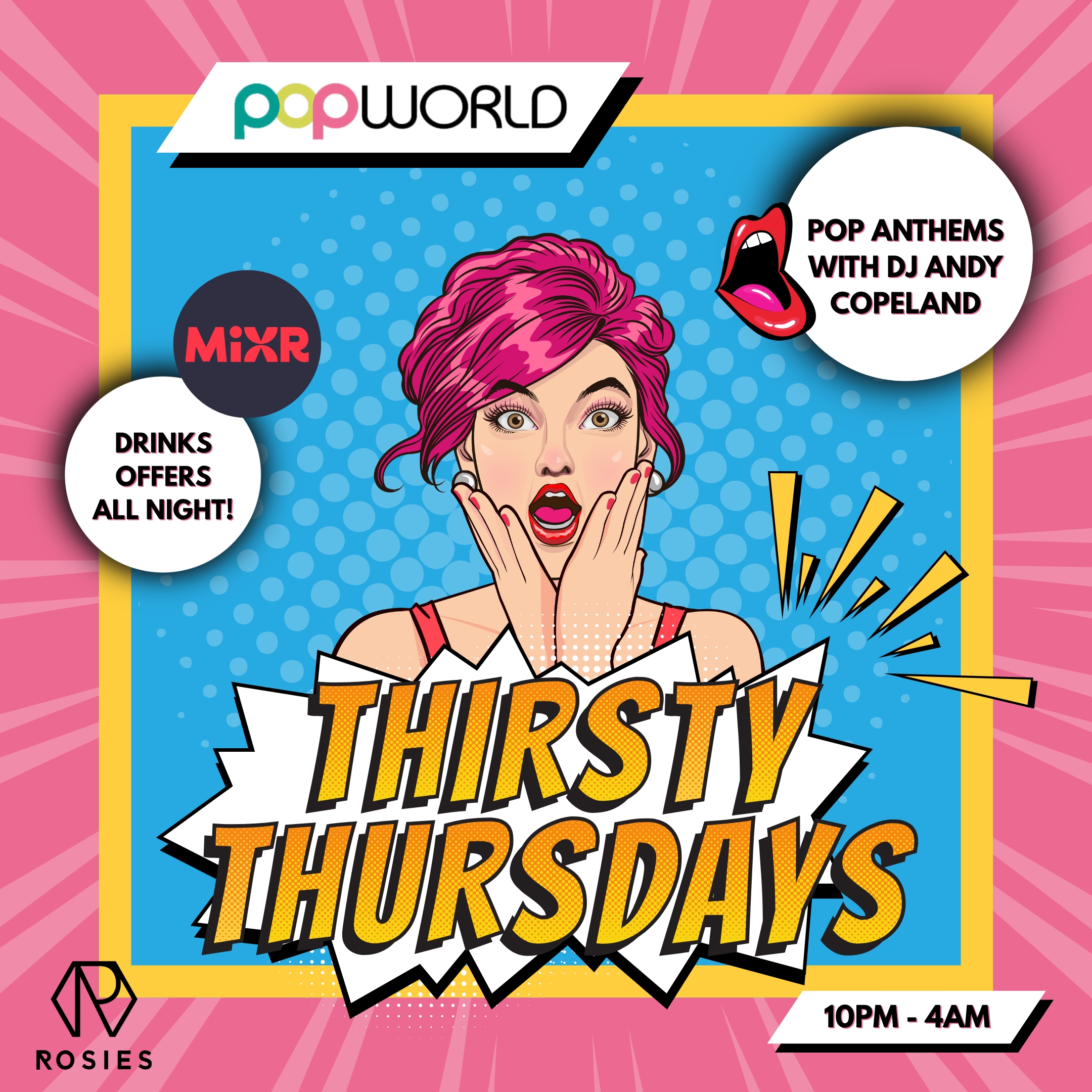 Join us in Popworld where DJ Andy Copeland is playing all your favourite pop & party anthems, all night long!