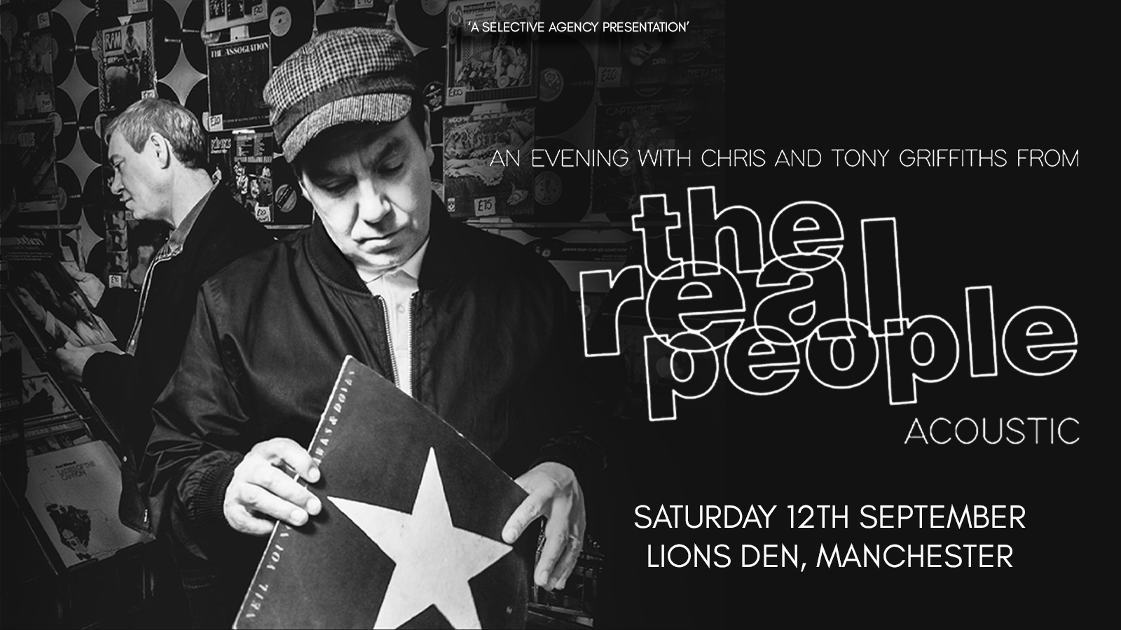 The Real People were formed by brothers Tony and Chris Griffiths in 1988, signing to CBS in 1989 and releasing their self-titled debut album in 1991, featuring Window Pane, Open Up Your Mind, and The Truth. The band toured extensively across the UK, Europe, the US, and Japan, appearing at Glastonbury and supporting major artists including The Pixies, David Bowie, and Inspiral Carpets. Their second album, Marshmallow Lane, produced with Jimmy Miller, included the Top 40 single Believer, further cementing their reputation and growing fanbase.