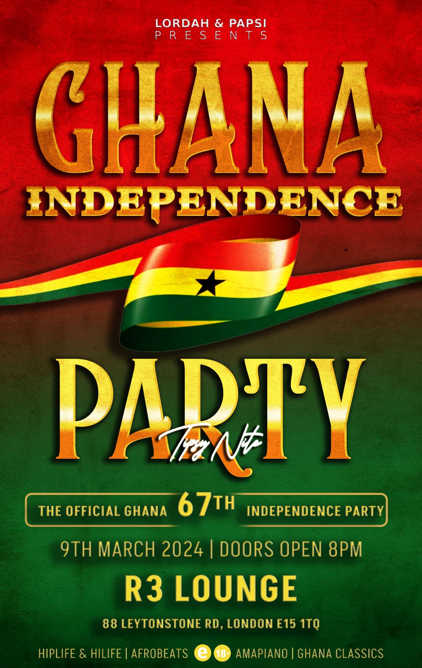 Let's celebrate Ghana's independence in style! Picture this: amazing DJs, a stunning venue with killer sound, smoke machines adding to the vibe, and of course, great hospitality. We'll be grooving all night long to everything from classic Ghanaian highlife to Afrobeat jams and more. It's gonna be epic!