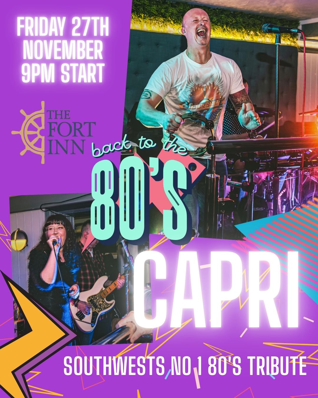 Letβs go back to the 80s for a massive night of music, dancing, and pure nostalgia as CAPRI, the South Westβs No.1 80s tribute band, hit the stage at The Fort Inn.