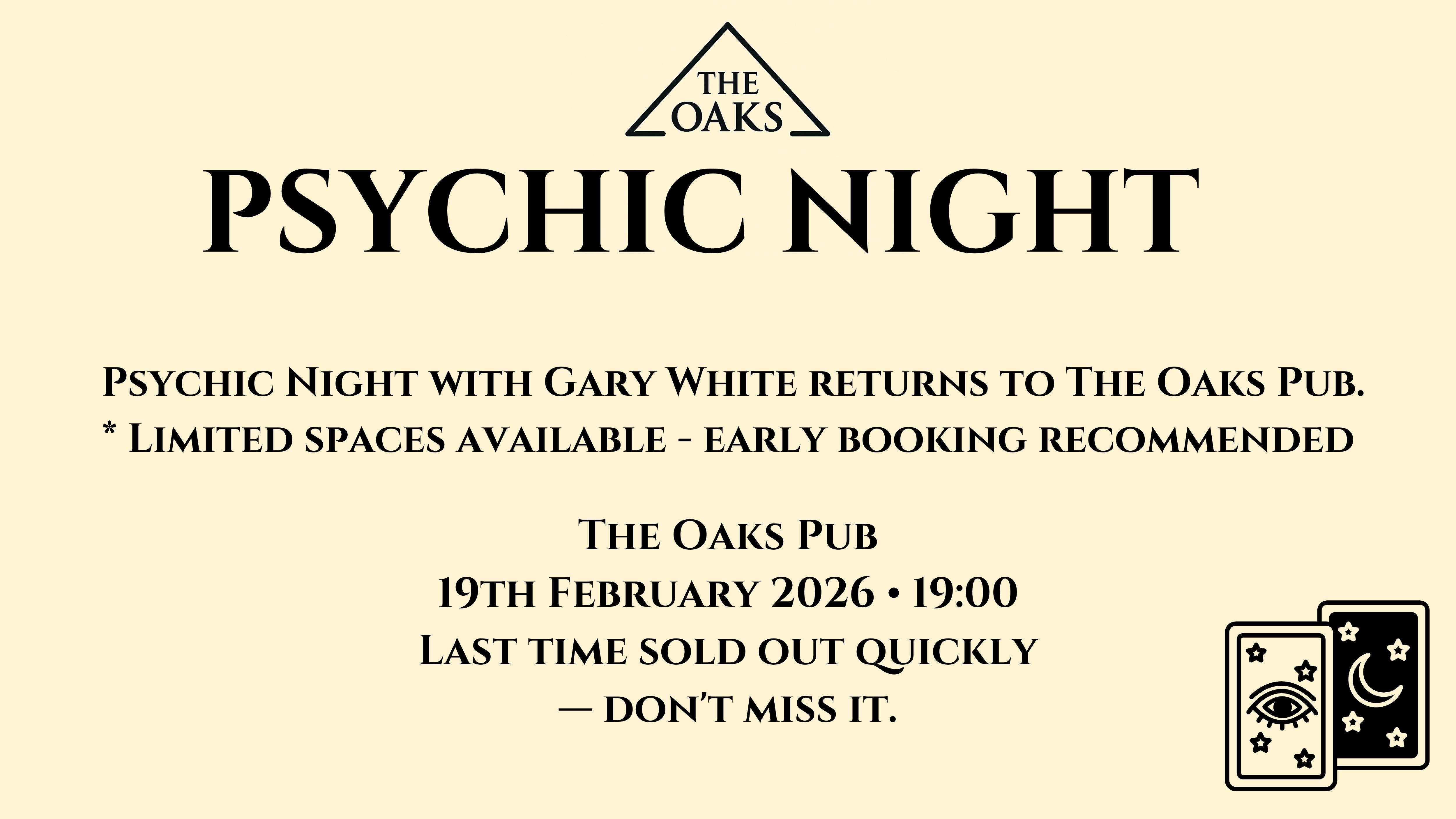 After a sell-out and hugely popular first event, Psychic Night with Gary White returns to The Oaks Pub.