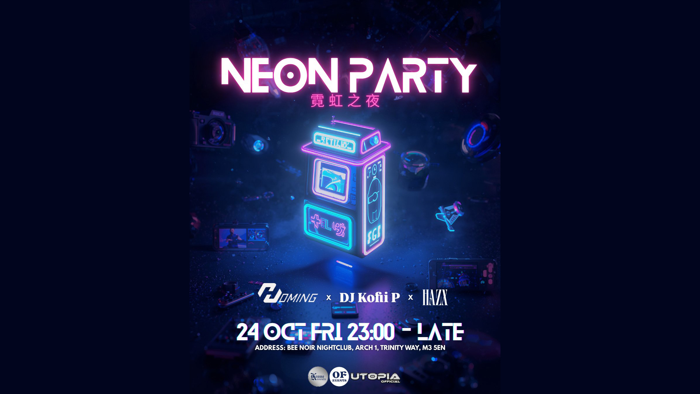 #KromeEvents #NeonNight #ManchesterParty #OFEvents #Utopia #DJHoming #DJHAZX #MCKofiiP #曼城派对 #霓虹之夜