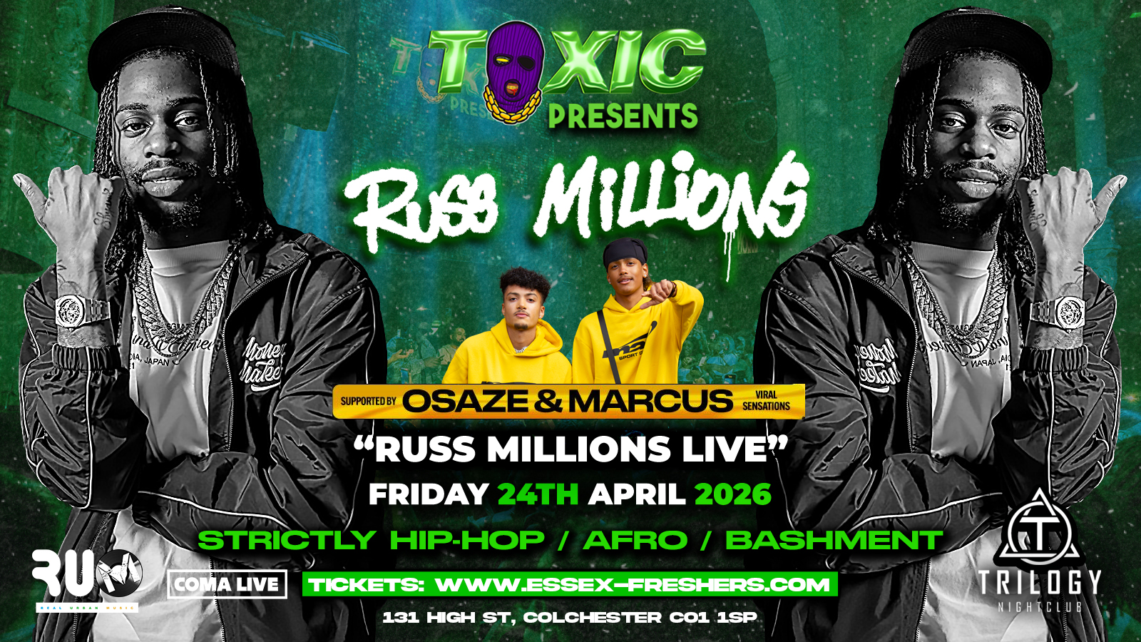 TOXIC Presents RUSS MILLIONS Performing LIVE - Friday 24th April 🚨LAST CHANCE TICKETS 🚨