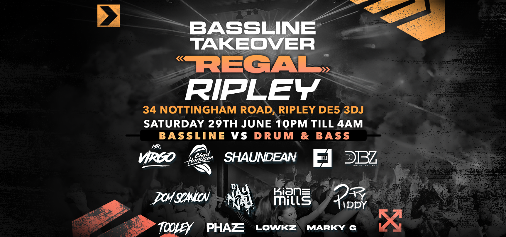 It's time to set your calenders for Bassline Takeover Ripley Bassline Vs Drum and Bass! We're thrilled to announce that The Regal Nightclub in Ripley will be hosting an epic rave on Sat 29th June 2024!