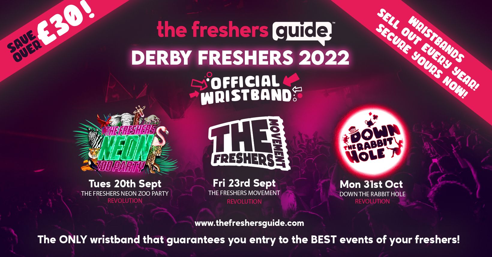 🎟️ SAVE OVER £30 WITH THE DERBY FRESHERS GUIDE WRISTBAND! 🎟️