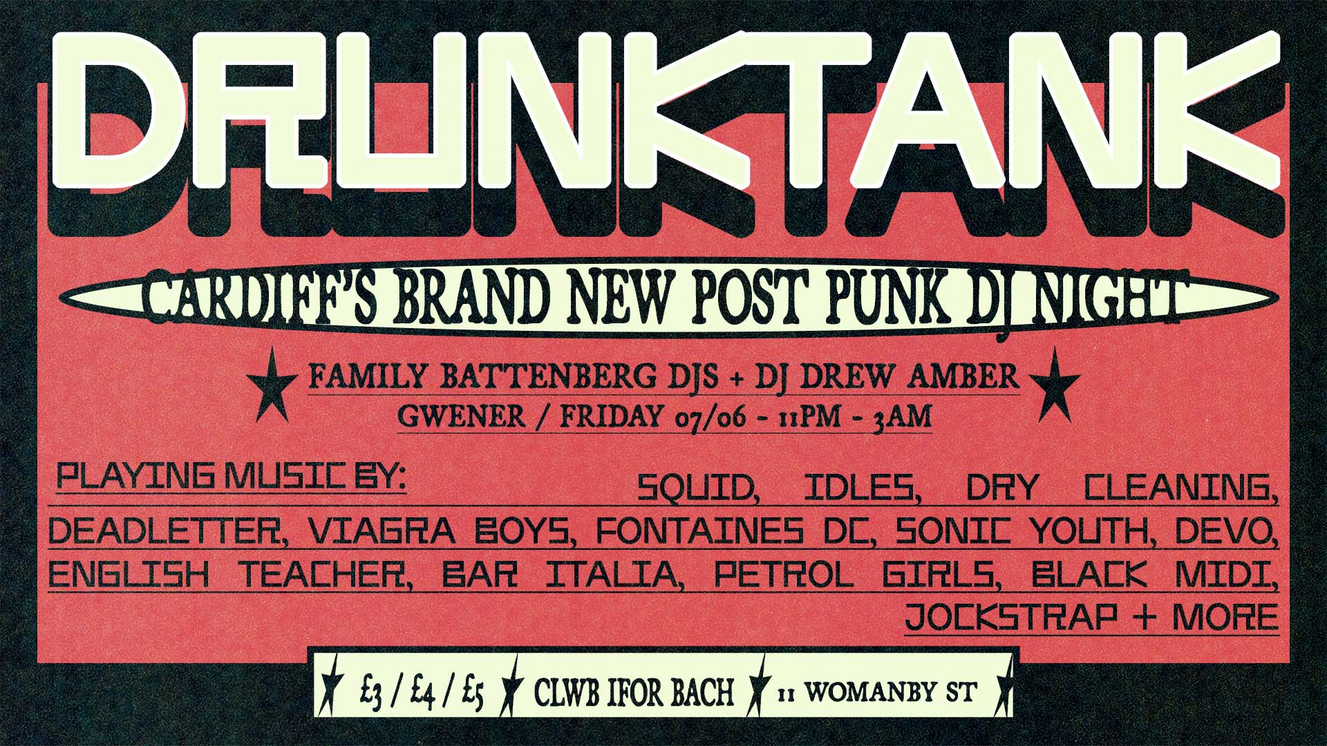 Cardiff's newest Post-Punk late night Parti, DRUNKTANK, returns.