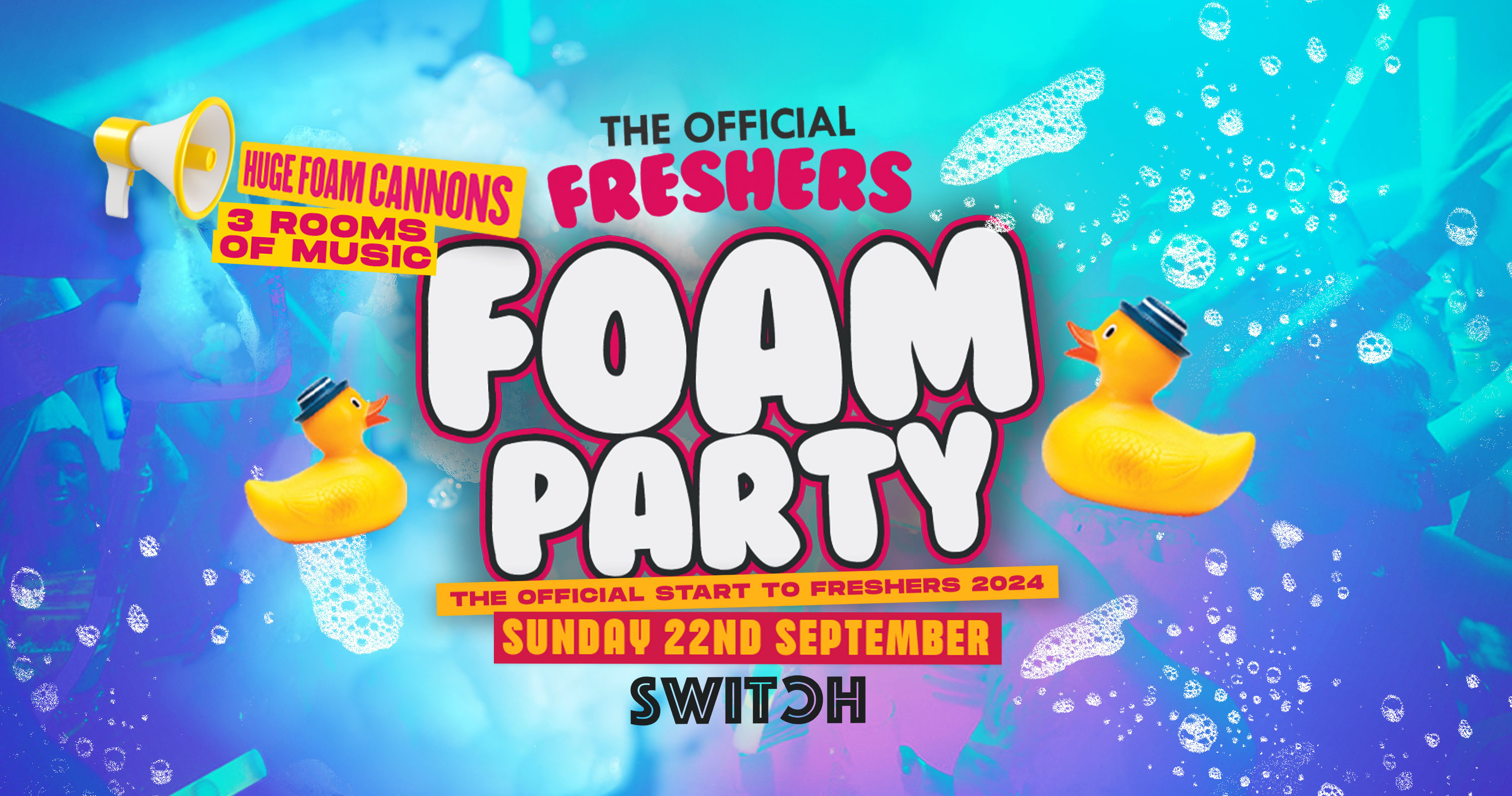 The UK's biggest FOAM CANNON!, Dancers, CO2 Jets and 3 Rooms Of Music and a solid freshers vibe!