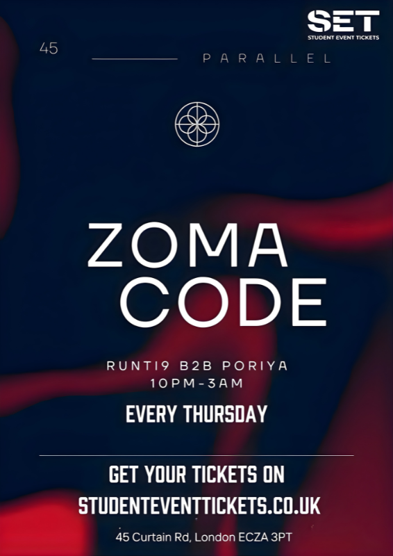 ZOMA CODE takes over 45 Parallel with a refined blend of Afro House and melodic techno, curated for a focused, late-night dancefloor.