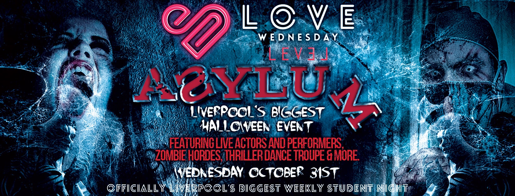 Level is transformed into THE ASYLUM - expect live actors roaming the venue, zombie hordes, Thriller dance troupe, full decor transformation & more...