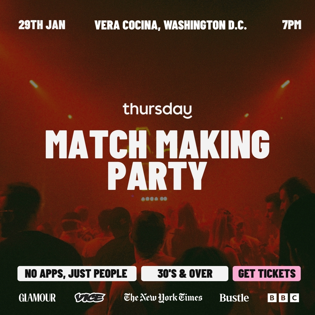 Follow your local Thursday Instagram account to be in the know of what’s coming up: Thursday Washington D.C.👈