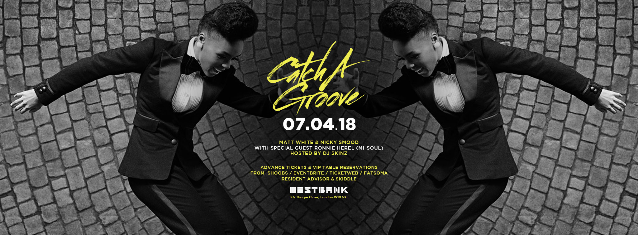 Catch A Groove returns for another monthly fix of classic 00's, 90's and 80's party classics from the genres of R&B, Golden Era Rap, UKG, Bashment, Neo Soul, Jungle, Ragga, New Jack Swing, Funky House and New Jack Swing. Joining our residents Matt White (Mi-Soul) Nicky Smood and Troppodaffy will be special guests Ronnie Herel (Mi-Soul) and DJ Skinz. Experience a night of classics for classy people at London's #1 throwback party for over 25's.