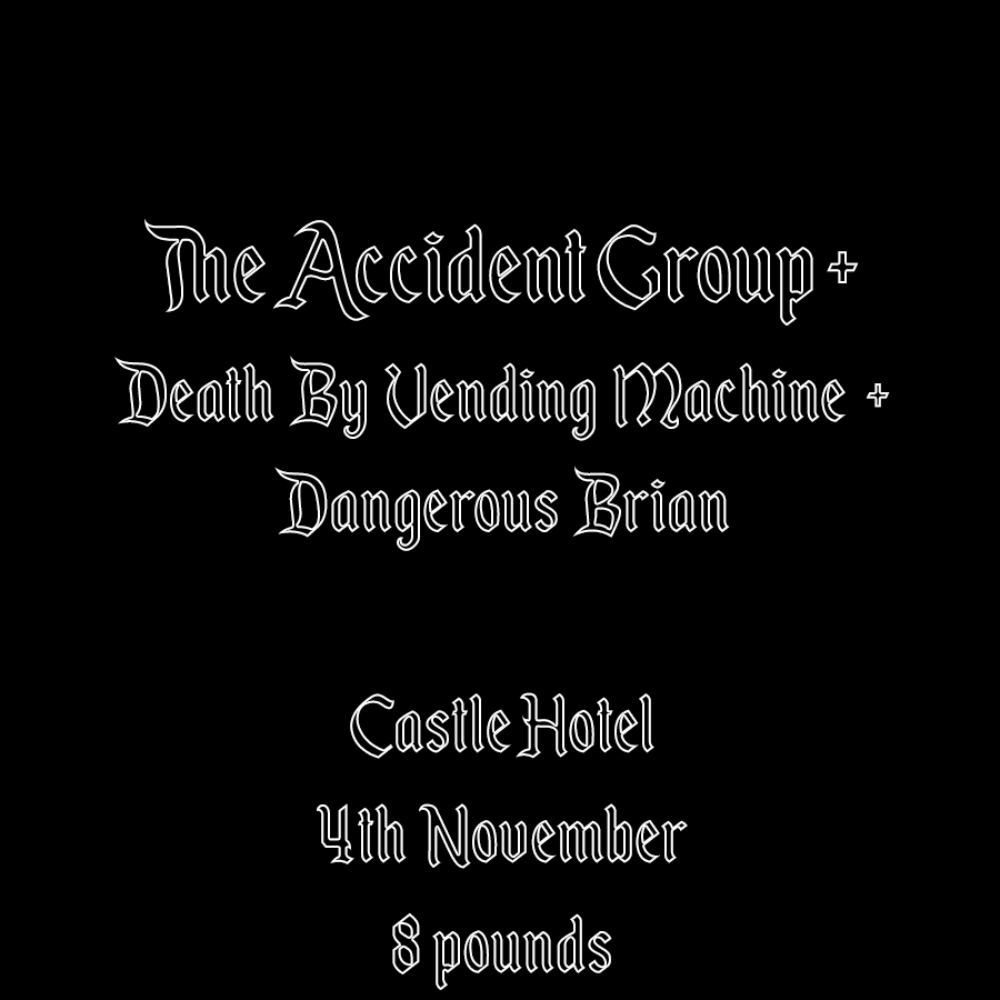 We are pleased to announce the fantastic The Accident Groups next headline show at The Castle Hotel.Support comes from two fantastic new local bands : Death by Vending Machine & Dangerous Brian