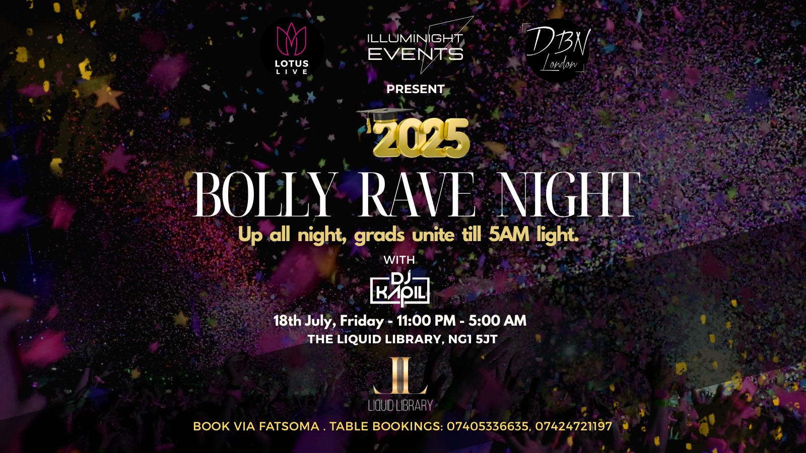 Nottingham, this July 18th, get ready to heat up your summer with the wildest Bollywood rave in town! Whether you’re celebrating graduation, wrapping up exams, or just craving the best beats and vibes, Bolly Rave Night is your all-night escape to dance, de-stress, and celebrate till sunrise.