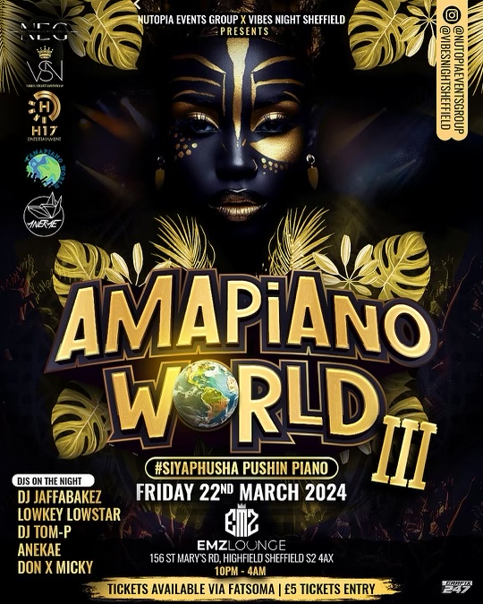 Please welcome back Amapiano World part III hosted by Nutopia Events Group in collaboration with Vibes Night Sheffield & H17 entertainment.