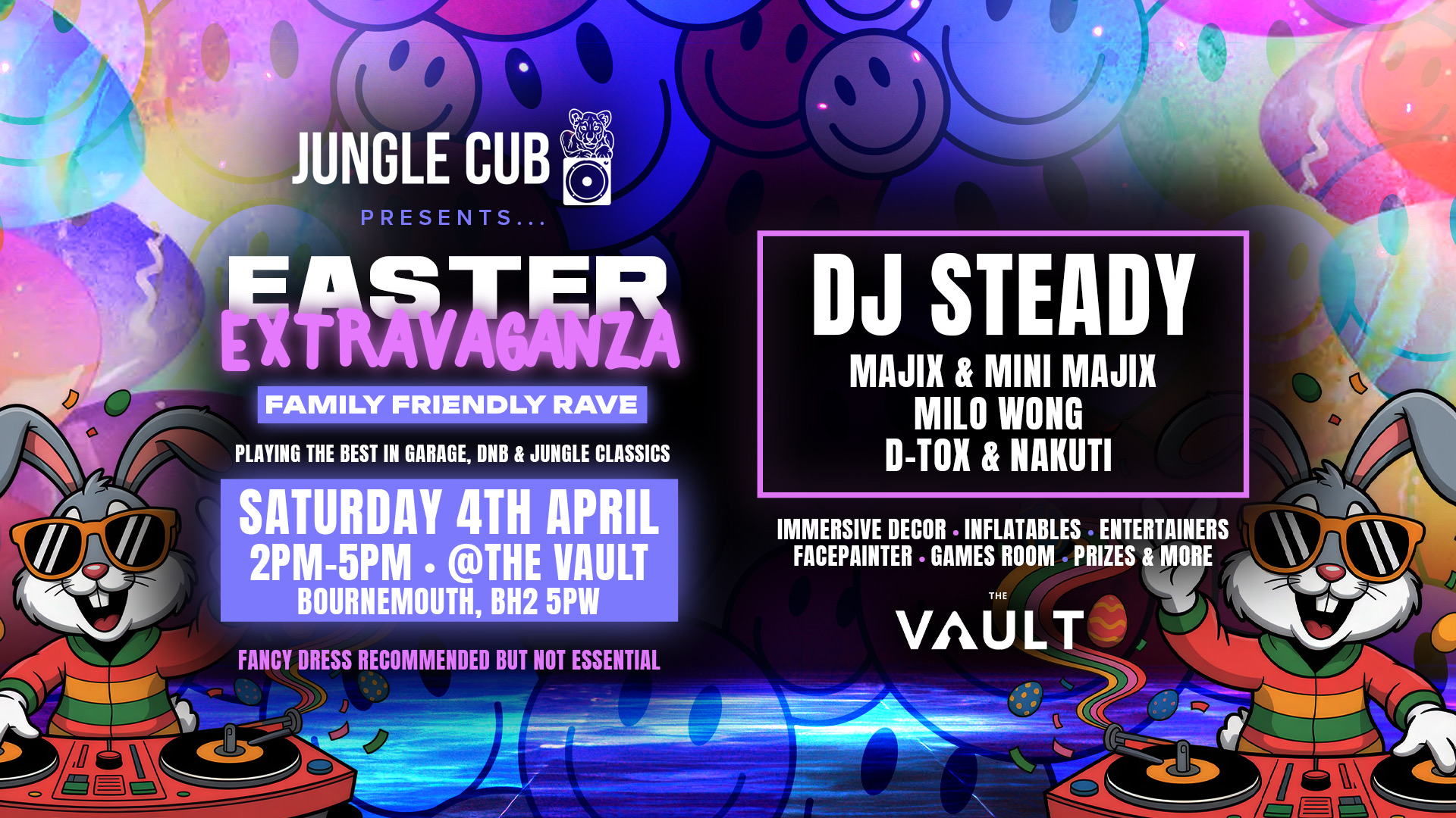 Tickets are limited and our family raves sell out fast. Click below to grab yours today and be part of Bournemouth’s most exciting Easter party!