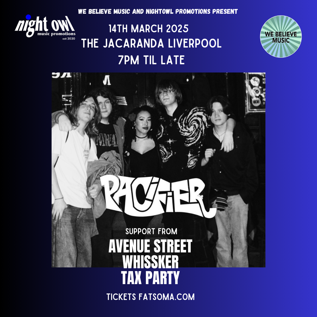 Young up and coming indie rock band PACIFIER headline at the iconic Jacaranda in Liverpool.