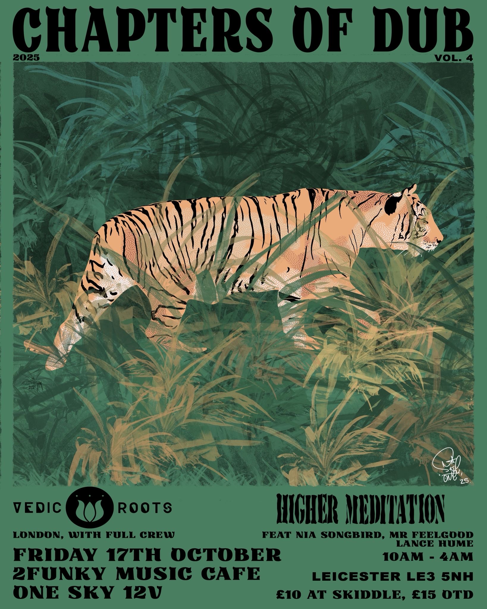 Chapters Of Dub vol4 ππ We invite Vedic Roots Sound System with full crew from West London for this Chapter.Higher Meditation will be there with the full family Nia Songbird, Lance Hume with his Sitar and Mr Feelgood ππ₯ Sound System meeting 4 scoops each at 2Funky Complex in Leicester. One Sky Sound System 12V will be playing in the Garden ππ Artwork by SkieOne
