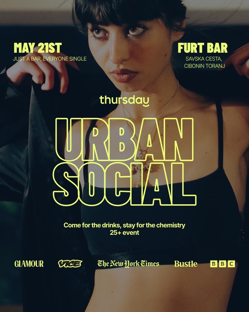 Zagreb, mark your calendar: on Thursday, May 21st, Caffe bar FURT hosts an Urban Social for singles who prefer real conversation over dating apps. The evening includes a few easy, low-key icebreakers to get things moving, plus good music and a relaxed crowd. Simple rule: everyone is single.